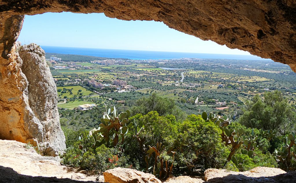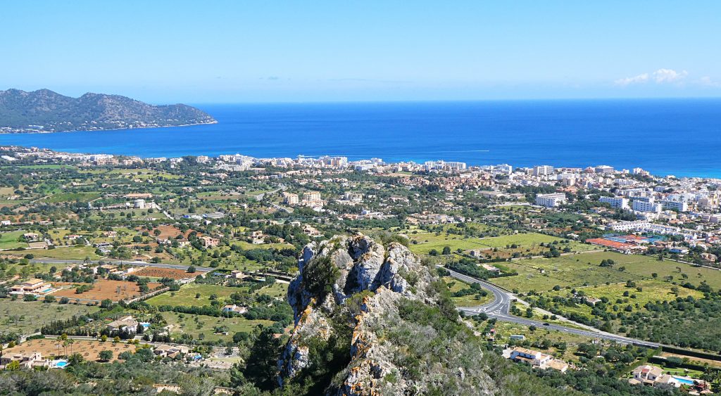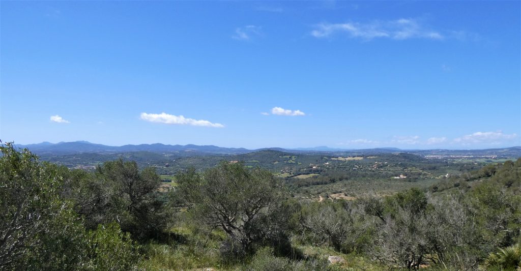 Die uns bescherte Aussicht reicht nicht nur über die Ostküste von Cala Rajada über das cap (Kap) des Pinar und die punta de n’Amer bis nach Cales de Mallorca. Vielmehr lässt sie uns auch über die Insel bis zum puig de Randa schauen.
