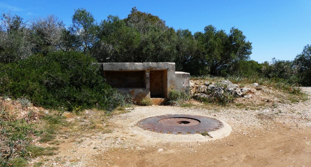 Wir starten in Cala Millor am camí (Weg) de na Penyal, an dessen westlicher Seite sich etwa 100 Meter nördlich des via Verda (Grünen Gleises), das über eine stillgelegte Eisenbahnlinie von Manacor nach Artà führt, ein kleiner und unbefestigter Parkplatz (39.600075, 3.362551) befindet. Nachdem wir dem camí de na Penyal über etwa 100 Meter nach Norden gefolgt sind und das auf unserer rechten Seite gelegene Panoramalokal Bella Vista passiert haben, schwenkt der Weg in östliche Richtung um. Er wird an beiden Seiten von Garrigues gesäumt, deren Zwergsträucher nur bis zu einer Höhe von etwa 2 Meter gewachsen sind. Entlang der Bergflanke folgen wir dem Weg über etwa 220 Meter, bevor wir an eine Geschütz- und Bunkeranlage gelangen, die noch aus dem Spanischen Bürgerkrieg (1936 bis 1939) stammt.