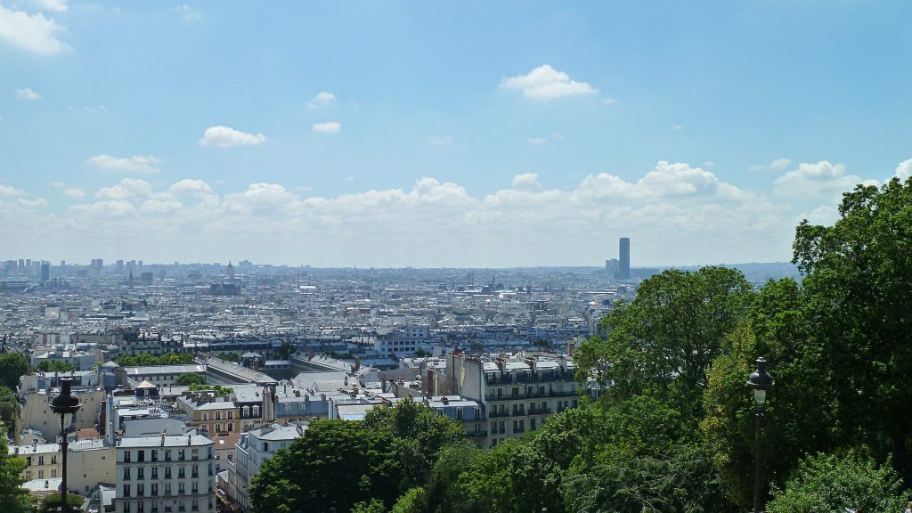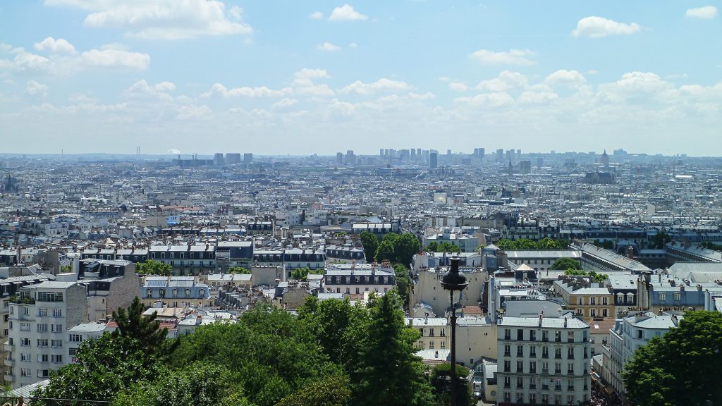 Der butte Montmartre wird von der weithin sichtbaren basilique du Sacré-Cœur de Montmartre gekrönt.