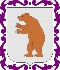 „Bestätigung des örtlichen Wappens der Gemeinde Campos, bestehend aus dem Logo, mit der folgenden Beschreibung: Ein Bär stehend oder aufgerichtet schaut nach links. Die Farben werden sein ein Farbton braun-rötlich für den Bären und grau silber für den Hintergrund, mit einem Ornament von lila Farbe.“
