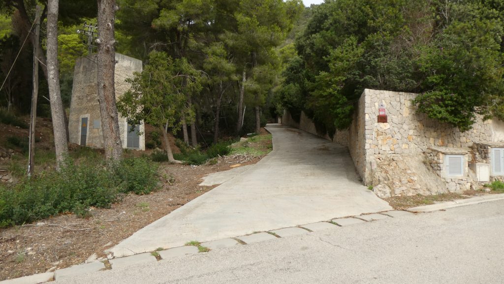 Wir beginnen unsere Wanderung in Costa des Pins an der Avinguda del Pinar an dem Anwesen mit der Hausnummer 105 (39.634079 N, 3.427548 O). Westlich des Grundstücks führt ein befestigter Weg nach Norden auf die Flanke des puig des Moro.