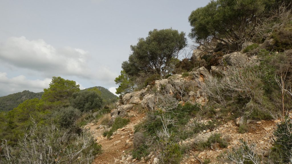 In nördlicher Richtung bringt er uns nach etwa 190 Meter auf den nur wenig bewachsenen Hang des puig de s’Orelleta, der sich ausladend nach Westen erstreckt.