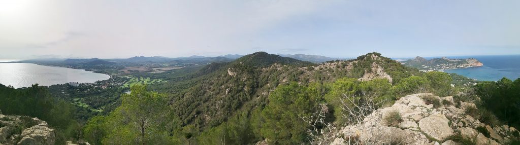 Nach Nordosten schweift unser Blick nicht nur über Canyamel. Der Ort umschmiegt den embarcador des Rei, der vom cap Vermell begrenzt wird, in dem die coves d’Artà genau zu sehen sind. In nordöstlicher Richtung reicht unser Auge vielmehr bis nach Cala Rajada, dessen Hafen wir deutlich erkennen. Nach Süden reicht unsere Sicht nicht nur über die badia de Son Servera, die von Cala Millor gesäumt und von der punta de n’Amer begrenzt wird. Vielmehr sehen wir am südwestlichen Horizont auch den puig de Randa, dessen Form eines Tafelbergs ihn unverwechselbar macht.