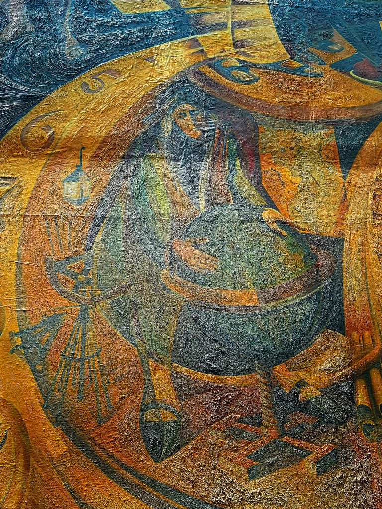 Amb l’alè del déu del Temps, el microcosmos mediterrani es va poblar d’Esperit i d’Energia. A l’extrem oposat, Gea, la deessa Mare Terra, anima amb el seu alè la Matèria i la vida fisica.
