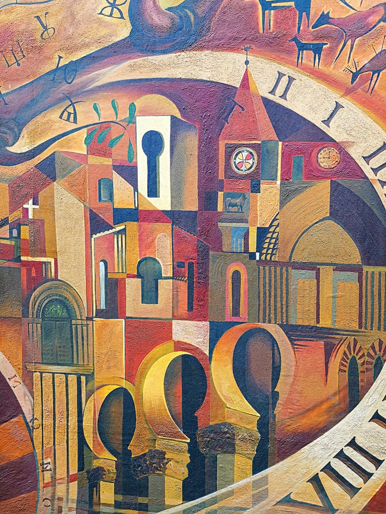 Über etwa fünf Jahre schuf der Maler Miguel Mansanet (*1956) das monumentale Gemälde „La Espiral del Tiempo (Die Spirale der Zeit)“, das eine Fläche von etwa 580 Quadratmeter bedeckt. In Colònia de Sant Jordi schmückt die Wandmalerei im Centre de Visitants de ses Salines seit 2008 den inneren Betonkegel des einem Talayot nachempfundenen Gebäudes, der von einer sich in die Höhe schraubenden Spiralrampe mit einer Länge von etwa 130 Meter umschlungen wird. Im Malstil des 14. Jahrhunderts gibt das Mural in miteinander verwobenen Szenen vielfältige Geschehnisse aus der Mythologie und der Geschichte des Mittelmeerraums wieder.
