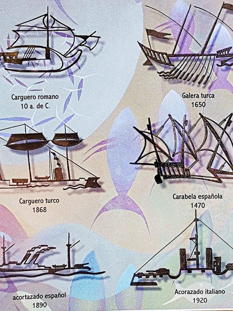 35 vaixells construïts amb ferro i llautó patinat. Representen naus de diverses èpoques de la història de la Mediterrània.