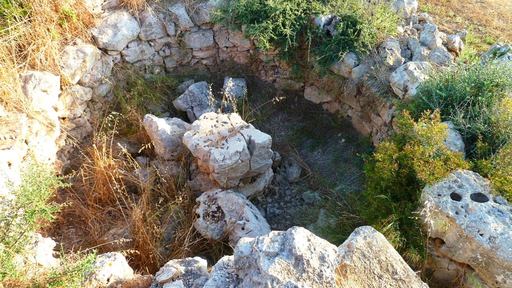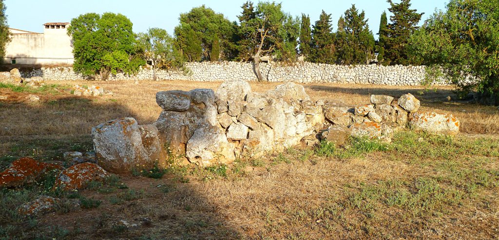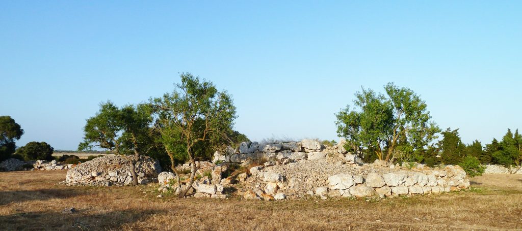 Die im Nordosten der Niederlassung aufragende Talayotruine (C) zeichnet sich durch die teilweise erhaltene Mittelsäule aus. Neben menschlichen Knochen förderten die Grabungen an der Talayotruine auch Tonwaren und knöcherne Messer zu Tage.