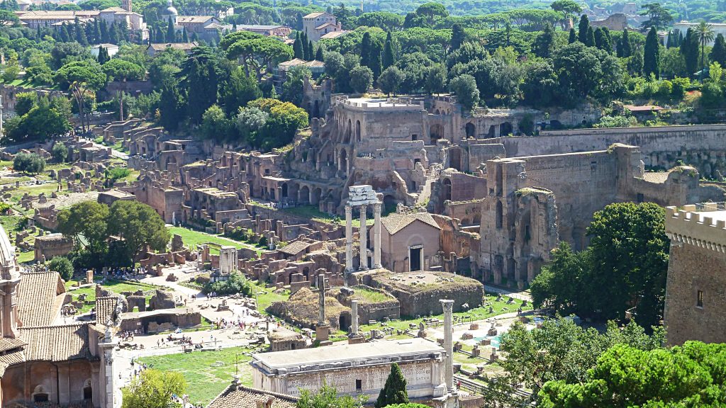 Das foro Romano war der Mittelpunkt des politischen, religiösen, kulturellen und wirtschaftlichen Lebens im antiken Rom, sodass es von zahlreichen öffentlichen und religiösen Einrichtungen umgeben war. Seine Bedeutung gewann es spätestens zu Beginn des 5. Jahrhunderts v. Chr. mit dem Bau von zwei Tempeln, die dem Gott Saturn (Ackerbau) sowie den als Dioskuren bezeichneten Zwillingsgöttern Castor und Pollux (Reiterei) geweiht waren. In der Nähe der Tempel wurde mit dem comitium bald ein öffentlicher Platz angelegt, auf dem die römische Politik „gemacht“ wurde. Das comitium grenzte nicht nur an die curia Hostilia, den Sitz des Senats, sondern auch an die rostra, die öffentliche Rednerbühne. Nach dem 476 erfolgten Untergang des Weströmischen Reichs geriet das foro Romano nicht nur in Vergessenheit, vielmehr wurde es sogar der Legende zugeordnet. Bis zur Renaissance (1400 bis 1600), die sich auf die Antike (800 v. Chr. bis 600) zurückbesinnte, trug das foro Romano den Namen „campo Vaccio (Kuhweide)“.